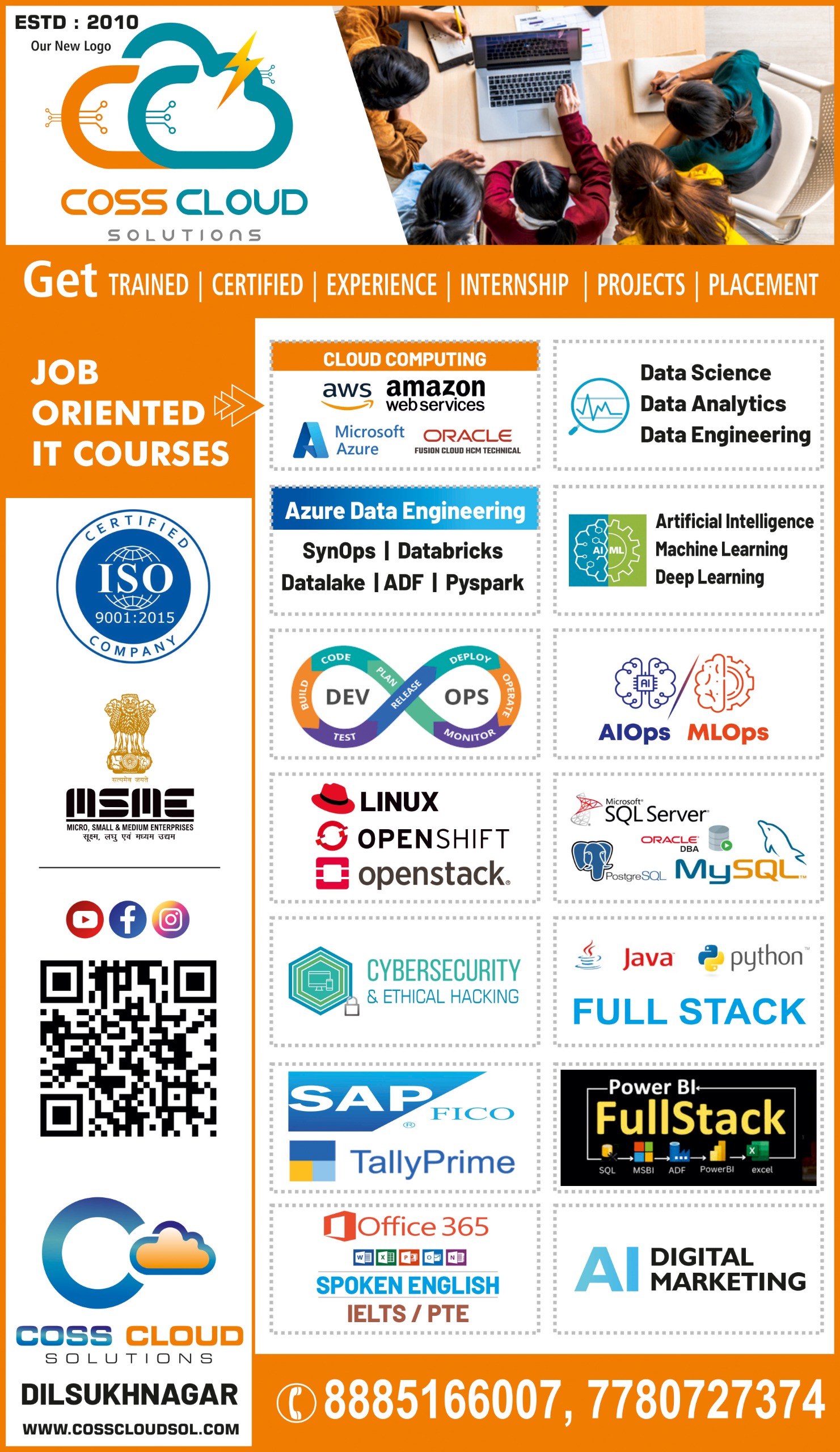 Coss Cloud Solutions is a top-rated software training institute in Dilsukhnagar, Hyderabad, offering professional IT courses with 100% placement support. We provide specialized training in AWS DevOps, Azure DevOps, Data Analytics with Power BI & SQL, Data Science, Java Full Stack, and Python Full Stack Development. Our industry-expert trainers deliver real-time project-based learning to help students and professionals build in-demand technical skills. Join Coss Cloud Solutions today and advance your IT career in Hyderabad’s growing tech market.