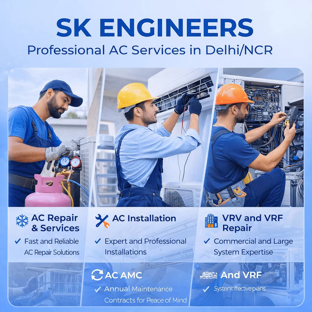 Looking for the best AC services in Delhi NCR? SK Engineers offers professional AC repair, maintenance, and installation for homes and commercial spaces. Our experienced technicians provide quick diagnosis and reliable solutions for split AC, inverter AC, and centralized systems.
