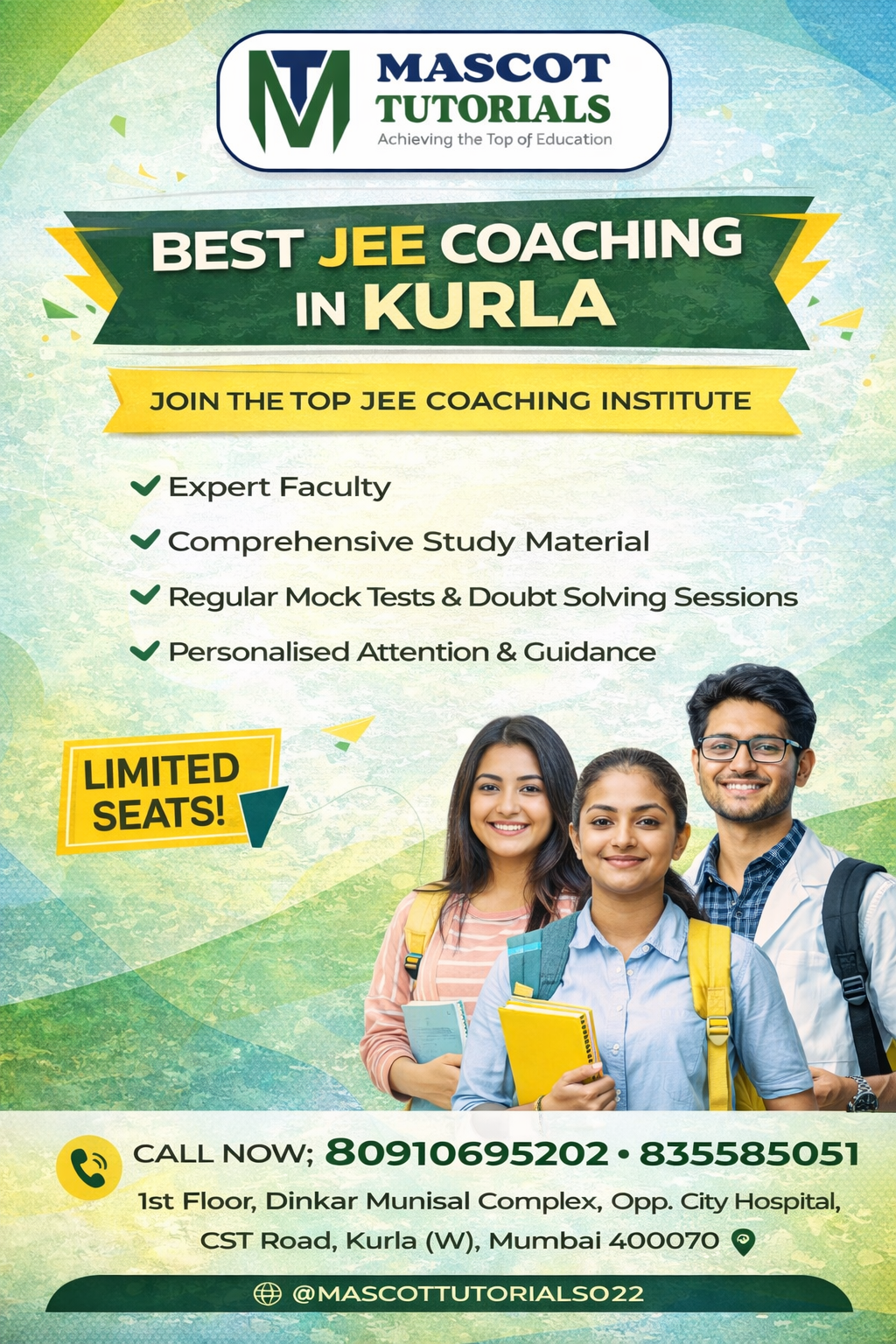 Searching for the best JEE coaching in Kurla? Mascot Tutorials offers focused preparation for JEE Main and Advanced with an emphasis on concept clarity, logical problem-solving, and consistent practice. Our experienced faculty guide students through Physics, Chemistry, and Mathematics using a structured teaching approach, regular assessments, and dedicated doubt-solving sessions. We support students with both classroom and online learning options, helping them stay disciplined and confident throughout their JEE journey. Ideal for students in Kurla and nearby areas who want serious, result-oriented JEE preparation.