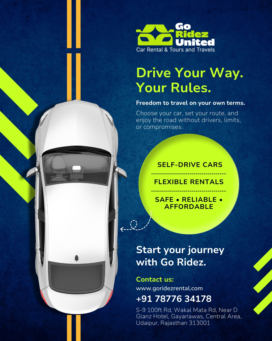 GoRidez United provides trusted and affordable taxi services in Udaipur for local rides, airport transfers, railway station pickups, sightseeing tours, and outstation trips. Our clean, well-maintained vehicles and professional drivers ensure a safe and comfortable journey every time. We focus on punctual service, transparent pricing, and customer satisfaction. Whether you are a tourist exploring the city or a resident needing daily travel, our taxi services in Udaipur are designed to meet your needs with convenience and reliability. Book easily and travel stress-free with GoRidez United.