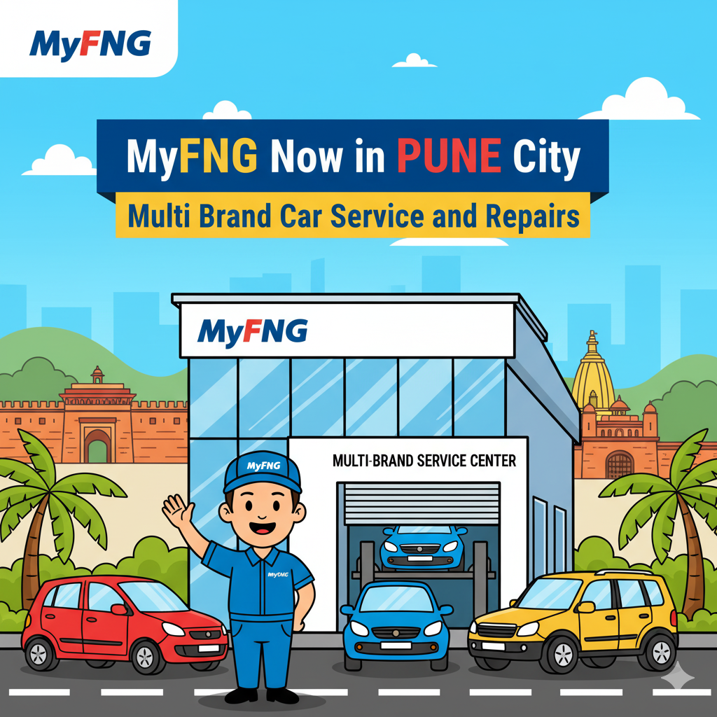 MyFNG is your trusted multi-brand car service and repair partner in Pune. With over 10,000 cars served, we provide expert car care with transparent pricing, warranty-backed service, and 100% genuine spare parts.