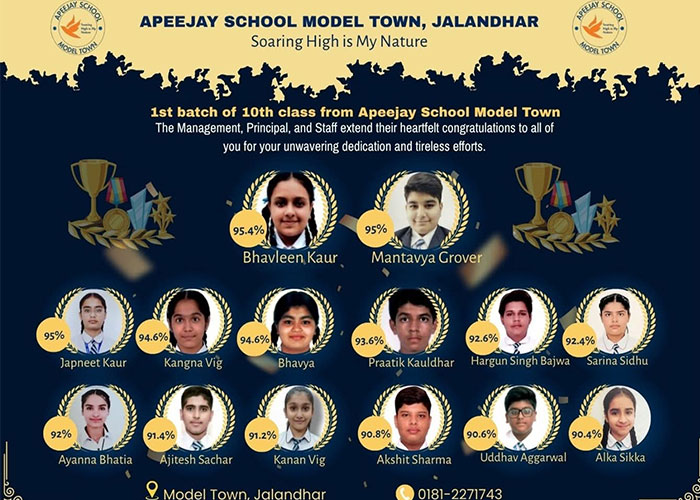 Apeejay School, Model Town, Jalandhar, commenced operations in 1981 as a feeder school to the first Apeejay Group School at Mahavir Marg, Jalandhar, which in turn is one of the top schools in Jalandhar, established by Dr Stya Paul, more than 50 years ago. The School is situated right in the heart of the city in an up-market locale. The magnificent school building towers over the surrounding area.