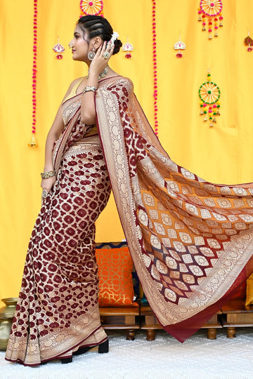 Vibrant, smooth and lustrous- the handwoven sarees at Bharatsthali are everything that a sari symbolizes. Deemed as the pride of various states of India and a must for ceremonies and religious affairs, this saree adds a dash of festivity and tradition to your wardrobe.