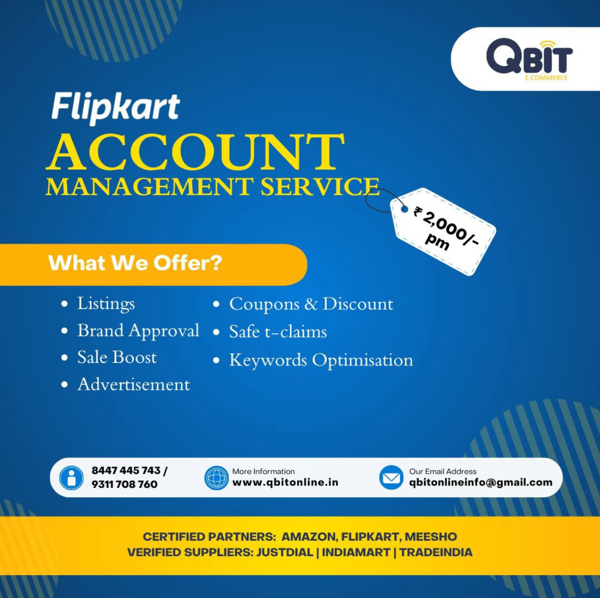 KEYWORDS ( useful for ranking at GOOGLE ) : Ecommerce Services Faridabad, Ecommerce Management Faridabad, Ecommerce Solutions Provider, Amazon Seller Account Management, Flipkart Account Management, Meesho Account Management, Ecommerce Store Setup, Web Design Services Faridabad, WordPress Website Design, Shopify Website Design, Custom Website Development, Website Designing Company Faridabad, Google Ads Management, PPC Services, Performance Marketing Services, Social Media Marketing, Social Media Management, Facebook Ads Management, Instagram Ads Management, Digital Marketing Services Faridabad, Online Marketing Services, Lead Generation Services, Trademark Registration Services, Trademark Consultant Faridabad, Brand Registration Services, QBIT Ecommerce Services